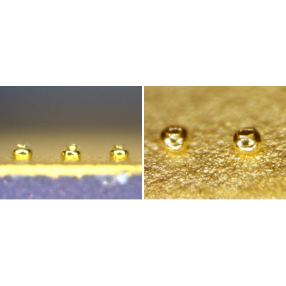본딩 프로세스 : • Tail없이 동일한 범프를 만들 가능성은 범프를 배치 한 후에 범프를 평평하게 하는 것입니다. • 간단한 방법은 두 번째 본드를 사용하여 와이어를 떼어 내고 범프를 부드럽게 하는 볼 본딩 모드를 사용하는 것입니다. 이를 위해 전동 Z- 및 Y- 축을 사용하여 HB16에 특수 본드 프로파일이 작성됩니다. • 또 다른 가능성은 편평한 본딩 피트가 있는 특수 코인 또는 탭 도구를 사용하는 것입니다.